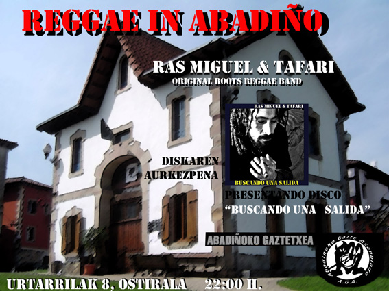 La banda de roots reggae de Irún (Guipuzcoa) Ras Miguel & Tafari presentan en concierto los temas de su primer álbum «Buscando Una Salida» (Rasta Records 2009), disco que concentra el trabajo de la banda durante estos años, con canciones en castellano y en inglés escritas por Ras Miguel, editado en mayo 2009. Grabado en su propio estudio de grabación situado en Irún “Rasta Records”, mezclado por Roberto Ras Sánchez en el estudio “A-Lone Ark” de Santander y masterizado por Ibón Larrucea de “Euridia Studio” en Bilbao. Producido por Ras Miguel & Tafari.