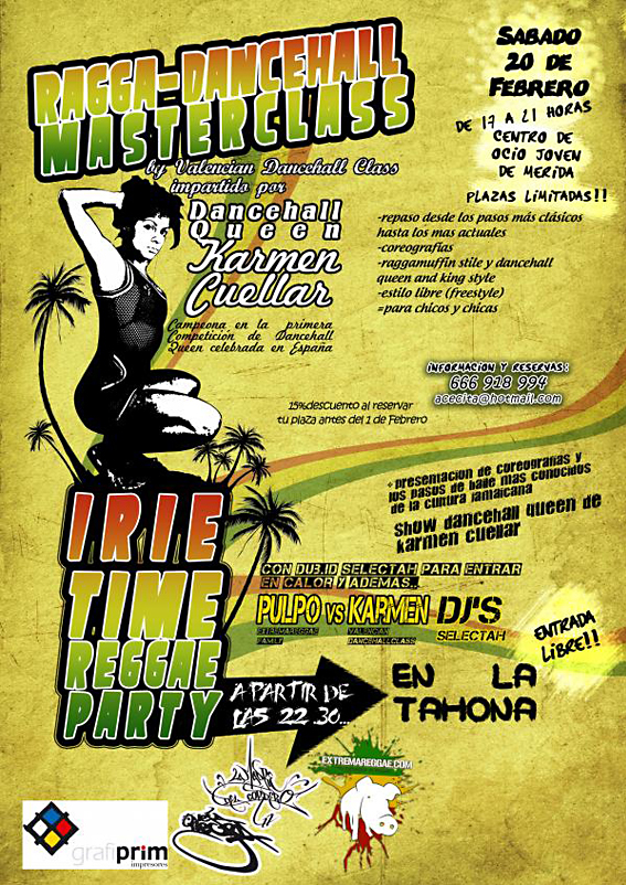 El próximo 20 de Febrero se organizará en el Centro de Ocio Joven de Mérida una clase especial de Dancehall impartida por Karmen (Spanish Dancehall Queen).