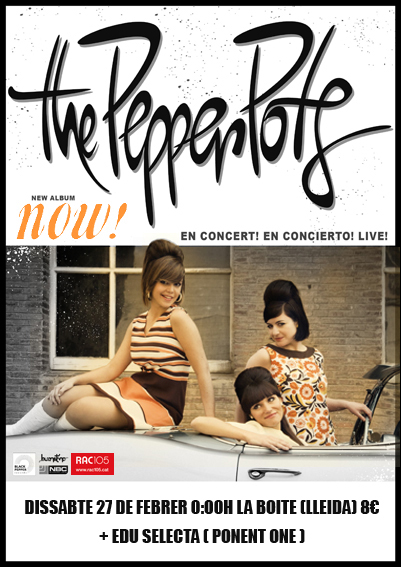 Este Sábado 27 de Febrero en la sala Boite de Lleida, podréis disfrutar del concierto de The Pepper Pots, presentando su nuevo álbum «Now!».