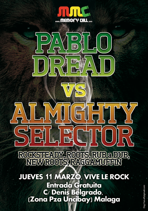 El Jueves 11 de marzo en Málaga (c/ Denis Belgrado) duelo musical entre Pablo Dread y Almighty Selector.
