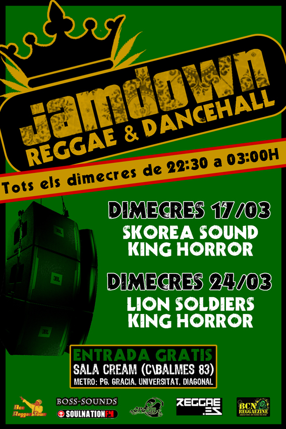 «Hoy, miércoles 31 de Marzo, y con motivo del comienzo de semana santa, celebramos un miércoles más el Jamdown. Contaremos con la presencia de los residentes Lion Soldiers y King Horror con sets repletos de big tunes de todos los tiempos y las mejores Reggae Vybz.»
