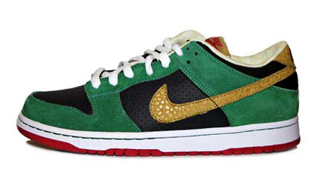 Las Dunk son uno de los modelos más usados por la marca Nike dentro de su colección SB (pensada para el skate). En este caso la marca americana presenta unas Dunk bajas (low) creadas a base de verde, rojo y amarillo.