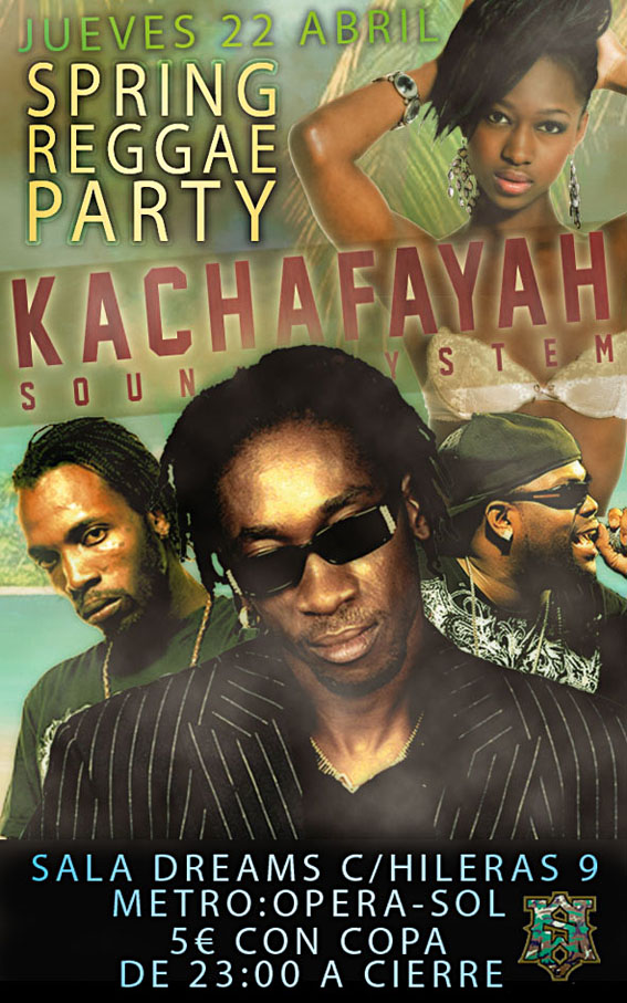 El Jueves 22 de Abril Kachafayah Sound System nos ofrecerá en Madrid una noche llena de dancehall y reggae en la Sala Dreams ( C/Hileras 9. Metro Opera o Sol).