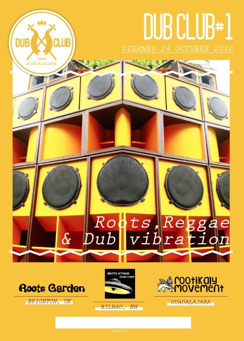 «Para esta primera ocasión tendremos el equipo de sonido autoconstruido de Sound Force, que se presenta por primera vez en la Sala Óxido desde Bilbao. Con una selección finísima y muy cuidada del mejor roots reggae, y un equipo de sonido que nunca antes habías podido sentir. Mientras que el plato fuerte de la noche serán Roots Garden desde Brighton en Inglaterra. Son desde 1995 la sesión de club semanal más longeva de la escena de reggae británico y unos de los sound systems y sellos discográficos con más nombre y más respetados de toda la escena. Todo un lujo poder tenerles para nuestro primer Dub Club Guadalajaramyspace.com/rootsgardensound