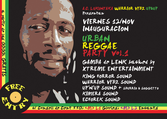 Fiesta Reggae en A.C. Lukum Taka (c/Consell de Cent 550) el próximo Viernes 12 de Noviembre.