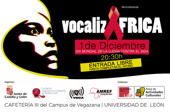 «León, 1 de Diciembre de 2010; VocalizÁfrica se ha creado en el marco del Programa África responde al Sida, financiado por la Junta de Castilla y León, y persigue frenar la expansión del Vih/Sida en zonas rurales de Kenia y de Tanzania. Para darlo a conocer, Amref ha organizado un microfestival que tendrá lugar el Miércoles 1 de Diciembre a las 20:30h en la Universidad de León.»