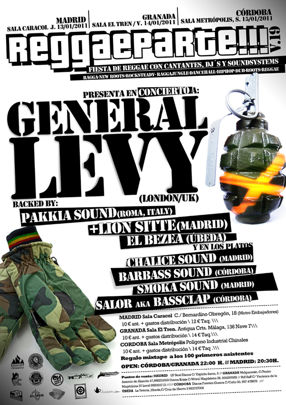 Nueva edición de la fiesta Reggaeparte que tendrá lugar los días 13, 14 y 15 de Enero en Madrid (Sala Caracol), Granada (Sala El Tren) y Córdoba (Sala Metrópolis) respectivamente.