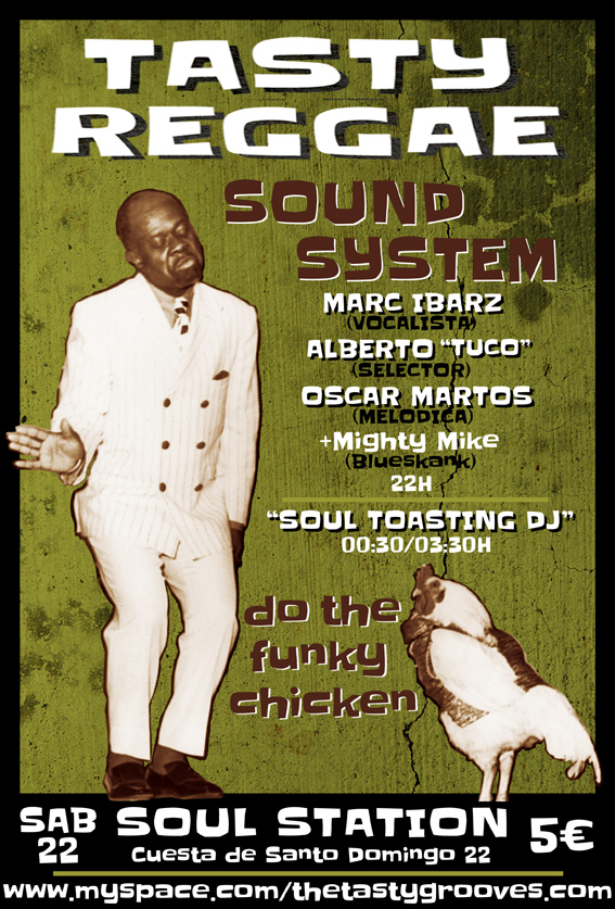 22:00. Tasty Reggae : Una sabrosa selección de ritmos de reggae clásico y soul protagonizada por componentes del grupo Tasty grooves. Selector: Alberto Peces, vocalista: Marc Ibarz, melódica: Oscar Martos y vocalista invitado: Mighty Mike (Blueskank).