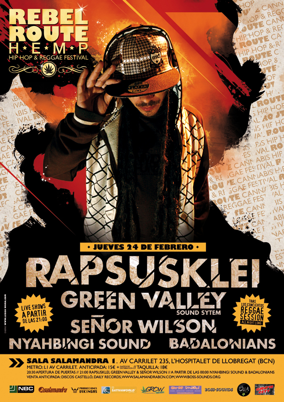 «El próximo jueves 24 de Febrero llega la primera edición del Rebel Route Hemp Festival, un festival de reggae y hip hop que tiene sus raíces en la cultura del mundo del cañamo.»