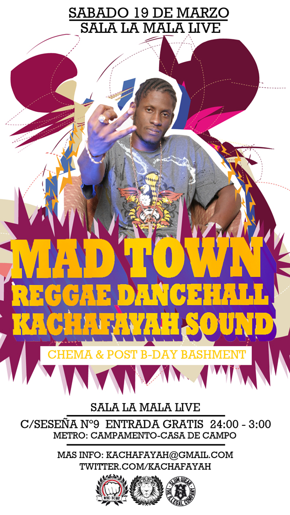 «Como siempre la sala La Mala Live recoge el acontecimiento, la que ya se ha convertido la casa de los Kachafayah. Esta sesiones organizadas por Kachafayah son conocidas como Madtown Dancehall Party, y por su cabina han pasado aristas como Lashe, Bon Korleony, Damajor (Kalibandulu)…»