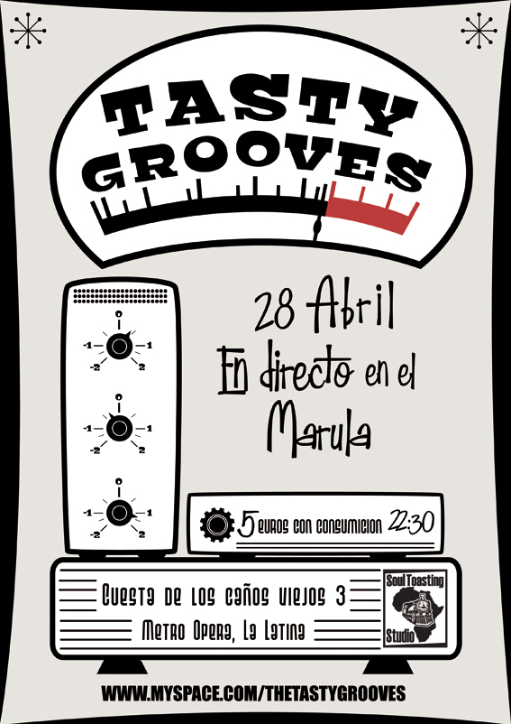 El jueves 28 de Abril a partir de las 22:30 el grupo Tasty Grooves actuará en el Marula Café de Madrid, c/ Cuesta de los Caños Viejos 3.
