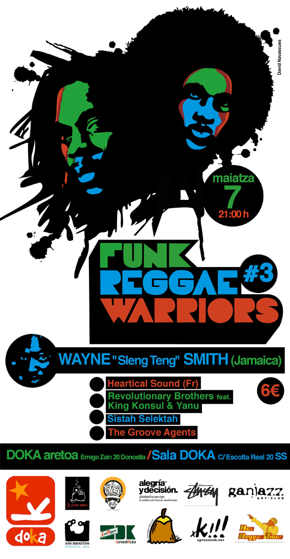 «El 7 de Mayo llega la tercera Funk Reggae Warriors Party. Es una fiesta homenaje a la música negra y ya el año pasado fue una gran celebración. Un año más se darán cita artistas y músicos que son referencia en estos estilos musicales.»