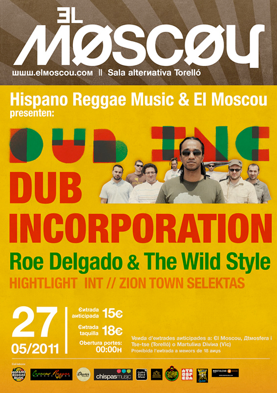 «El Viernes 27 de Mayo, en la sala alternativa El Moscou de Torelló, habrá concierto de reggae de la mano de la gente de Hispano Reggae Music y El Moscou.»