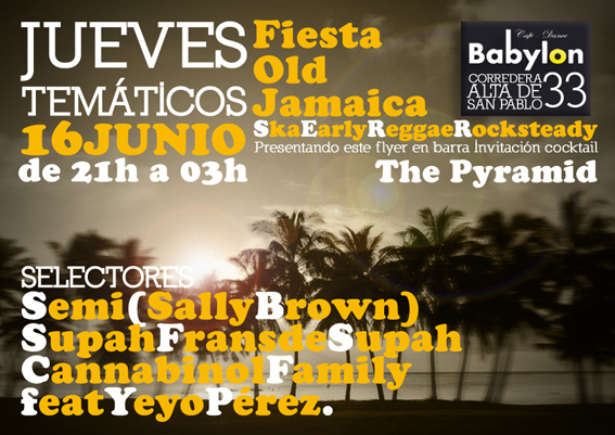 «¿Dónde puedes ir a escuchar una noche lo mejor del oldies jamaicano? ¿En Madrid dónde puedes acudir a disfrutar del mejor calypso, ska, rocksteady y early reggae? A partir de ahora al Babylon, en la Calle Corredera Alta de San Pablo 33, en pleno Malasaña a diez pasos de la boca de metro de Tribunal.»