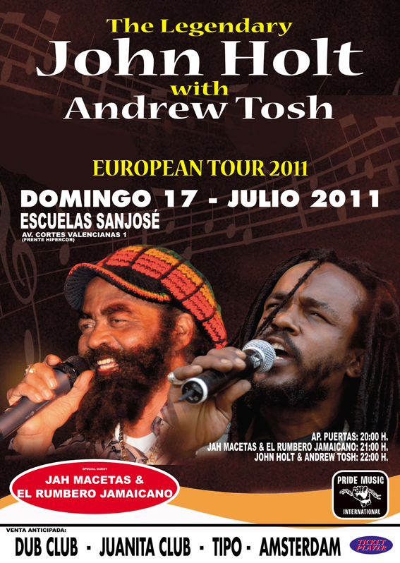 El domingo 17 de Julio y Tosh actuarán en en el Auditorio escuelas San José. Completarán el cartel y El Rumbero Jamaicano.