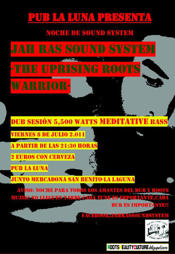 Noche de Sound System este viernes 8 de Julio en el Pub la Luna en La Laguna con Jah Ras Sound System, The Uprising Roots Warrior.