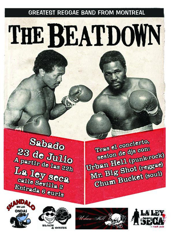 Desde Skándalo en las Ondas y el colectivo Black&White junto con el apoyo de Urban Hell (Tienda-Tattoo) y la logística de la Ley Seca Pub, tenemos el placer de presentar a The Beatdown directamente desde Montreal (Québec, Canadá).»