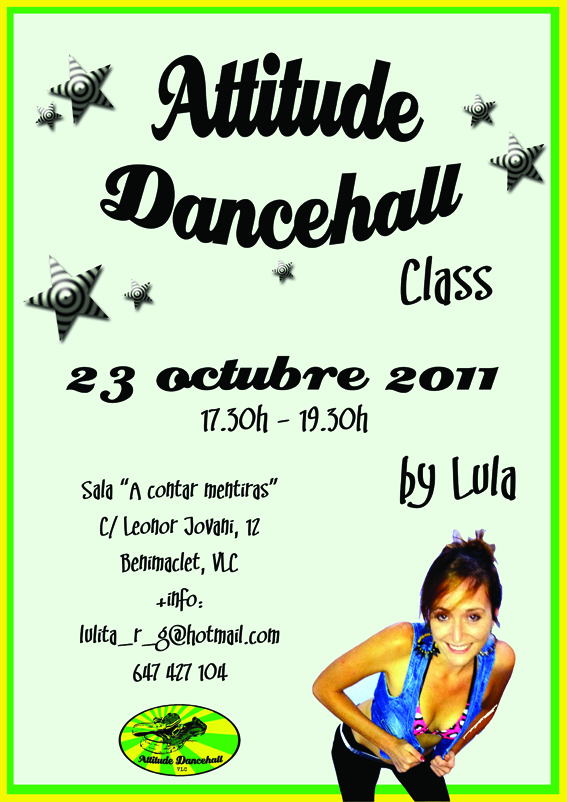 «La clase será impartida por Lula. El nivel de la clase será básico y medio y para chicos y chicas, ya que haremos pasos nuevos y los más conocidos, coreografías de dancehall tunes para todos y solo para las chicas técnica queen, head top, move di pumpum in all di ways, estiramientos… pero quien pueda y se anime. Y sobre todo el buen rollo y los últimos dancehall tunes que siempre nos envuelven.»