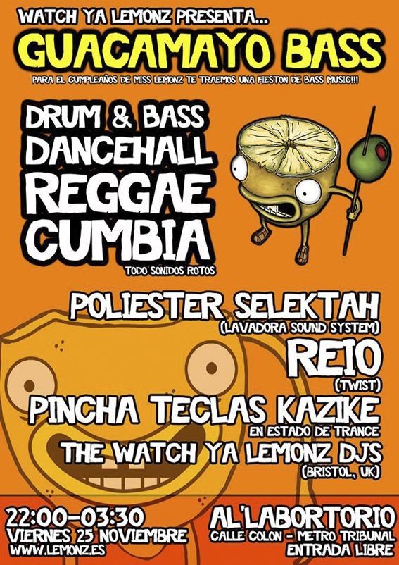 Este viernes 25 de Noviembre fiesta cargada de Reggae, Dancehall, Gypsy, Drum & Bass,UK Funky y Dubstep organizada por Watch Ya Lemonz