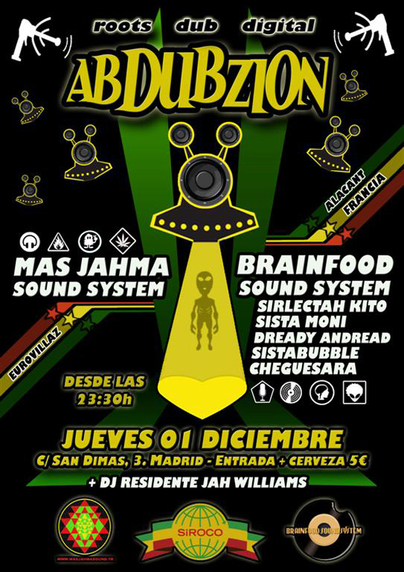 El próximo jueves 1 de Diciembre en la Sala Siroco de Madrid, a partir de las 23:30 nueva edición del Abdubzion cargado de Roots, Digital & Dub.