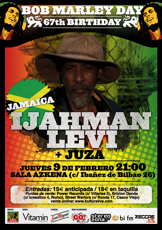 «En el día especial del aniversario y cumpleaños de la leyenda Bob Marley se presenta en Bilbao a Ijahman Levy de la mano de la promotora David Organización y Vitamin Producciones.»