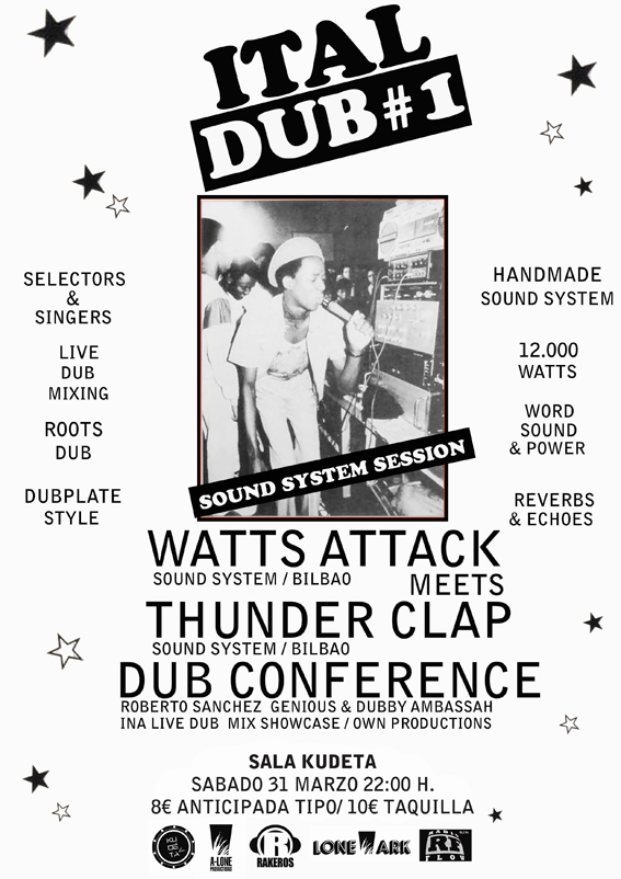 Sesión dub el próximo 31 de Marzo en la sala Kudeta de Santander con Watts Attack, Thunder Clap Sound System y Dub Conference.