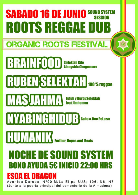«Organic Roots Sound System con Nyabinghi Dub, Brainfood Sound System, Ruben Selektah, Humanik y Mas Jahma feat. Jimboman, la familia Organic Roots vibrando para el despertar.»