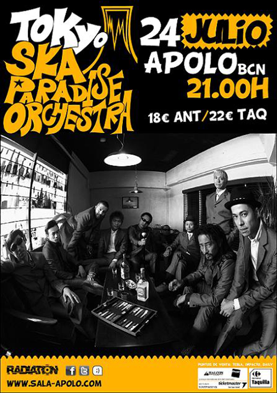 «Tokyo Ska Paradise Orchestra estarán actuando el próximo martes 24 de Julio en la Sala Apolo de Barcelona y el próximo 25 de Julio, miércoles, en el festival de Cartagena, Festival La Mar de Músicas 2012, este último, de acceso libre.»