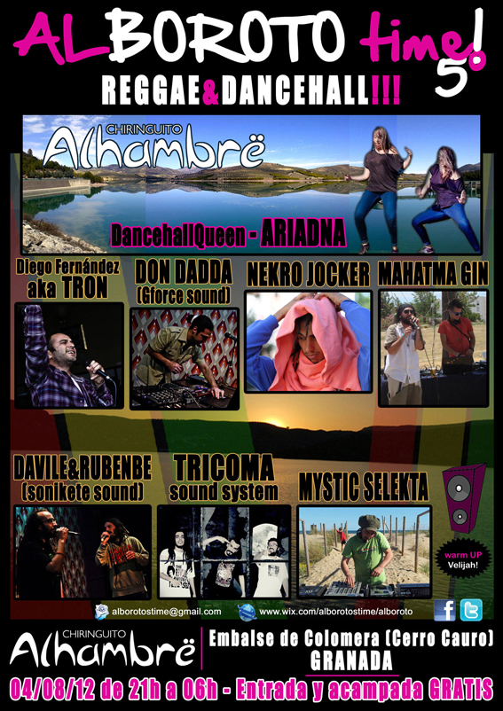 El 4 de Agosto tendrá lugar la quinta edición del festival Alboroto Time en el Chiringuito Alhambre de Granada, a pie del embalse de Colomera en Cerro Cauro, en plena naturaleza.