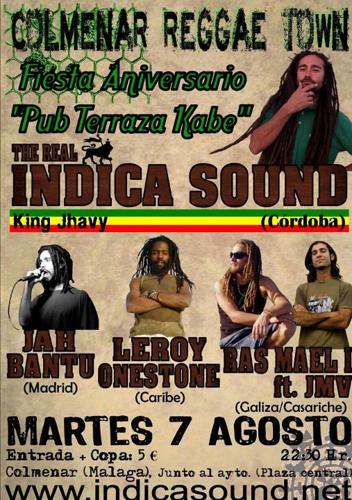 Con motivo del aniversario del Pub Terraza Kabe se celebrará una fiesta con The Real Indica Sound, Jah Bantu, Leroy Onestone y feat JMW.