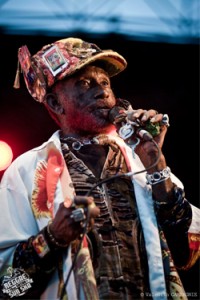 Era el turno de uno de los músicos más trascendentales de la historia de la música jamaicana. Con Lee “Scatch” Perry uno no sabe donde acaba la genialidad y donde empieza la locura. El concierto comenzó con una espectacular versión de “Jah Live”. Con más de 75 años, la voz de Perry ya no es lo que era, pero su sola presencia, su misticismo, sus disfraces, su pelo teñido y su obsesión con el fuego, hacen que merezca la pena acercarse a verle. En un momento se acercó a los focos y agarró una bombilla, que podía llevar dos horas encendida, sin inmutarse. Un directo lleno de clásicos que no defraudó a nadie.