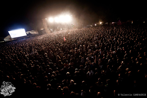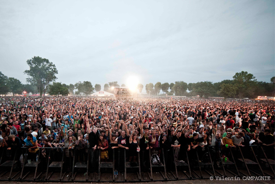 Dia1: Los abonos para asistir al festival se habían agotado con una semana de antelación, las entradas para el sábado también. El jueves por la noche, un día antes de que empezase el festival, el camping colgaba el cartel de “completo”, así que todo el público que llegó el viernes se las tuvo que apañar para acampar donde pudiese y parte decidió tirar hacia los viñedos que rodean al pueblo. El festival tiene lugar en Pauillac (Medoc), cerca de Burdeos, la región donde se encuentran los mejores vinos del mundo, al menos los más caros. Era curioso ver a muchos grupos acampados y haciendo barbacoas entre cepas millonarias. El pueblo es muy acojedor, pero es posible que no esté preparado para recibir semejante afluencia de público. Los organizadores confirman que se vendieron 80.000 entradas entre los 3 días.
