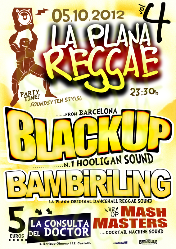 El próximo 5 de Octubre Castelló de llenará de Reggae de la mano de los basrceloneses Blackup (nº1 hooligan sound) y Bambiriling (La Plana original dancehall reggae sound).