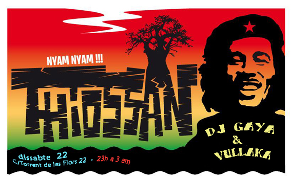 «Este proximo sabado tendremos a Dj Gaya y Vullaka en el pub restaurante Senegalès Thiossan (barrio de Gracia) para realizar otro encuentro entre amantes de las remezclas y mashups con clave jamaicana y otras hierbas: early & rock, dub & hip hop, new roots & r’n’b, rockn’roll & ska, dubstep & pop, electro-swing, dancehall & rap, funk & drum n’ bass,…»