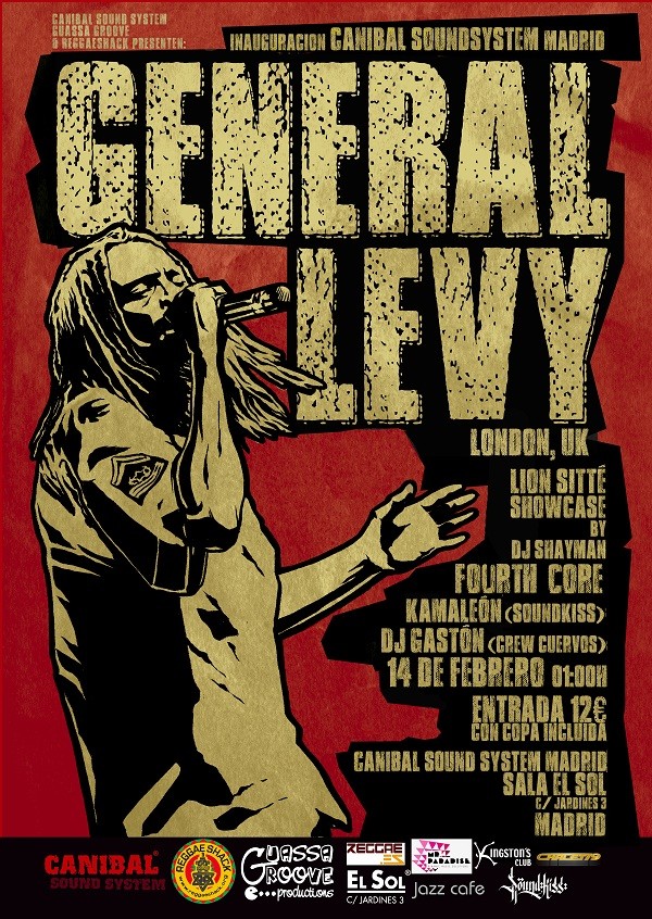 Como cabeza de cartel tenemos al artista Britanico General Levy con un Show espectacular, lleno de fuerza, energía y mensaje positivo. General estará acompañado del artista Lion Sitté que presentará su nuevo disco “otros tiempos” (a los platos, Dj Shayman) tras la actuación del Británico. después los asistentes podran disfrutar de la actuación de Orozco y Kamaleon de SoundKiss y una sesión del componente de Crew Cuervos, DJ Gastón.