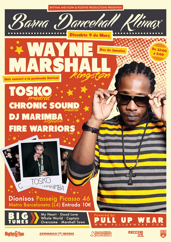 Rhythm and Flow y Positive Productions tienen el placer de anunciar la actuación de Wayne Marshall por primera vez en la  península ibérica. Sin duda si te gusta el y el Dancehall no te puedes perder esta noche irrepetible con un veterano del Dancehall como es Wayne Marshall.
