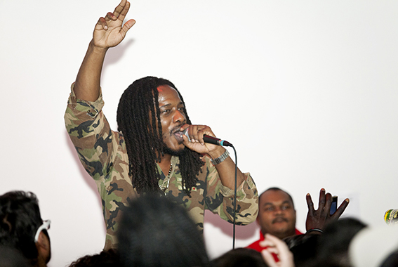 Cuando las reservas de una nada apetitosa cerveza griega empezaban a escasear y las piernas de más de uno temblaban, apareció el máximo protagonista de la noche, el jamaicano .