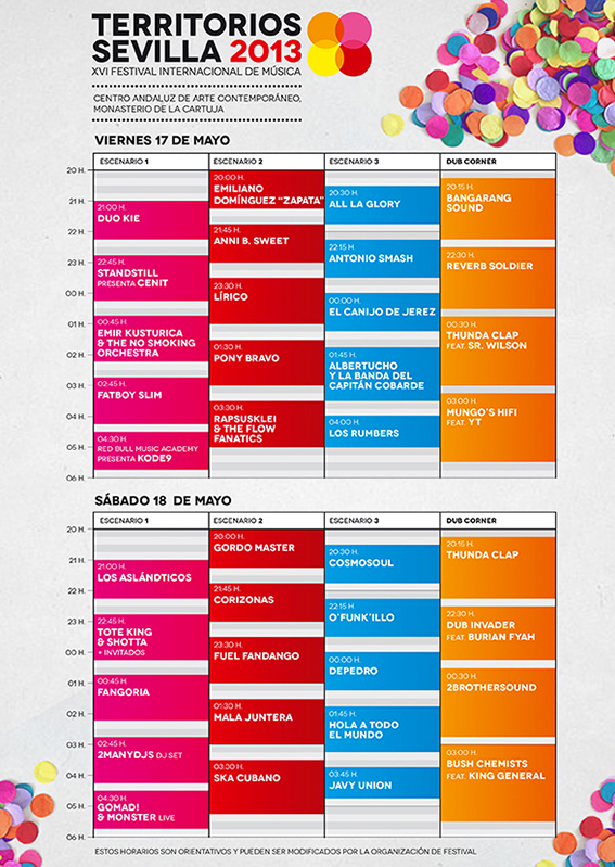 Los horarios previstos para ambos días de festival son los siguientes:
