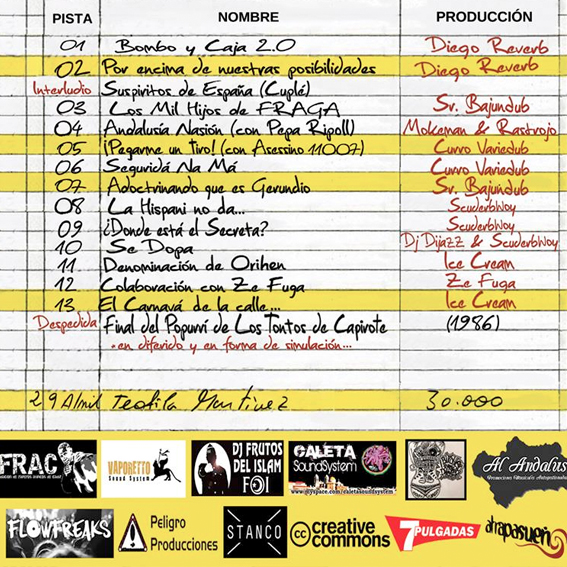 En éste disco encontraras las letras y voz de Karim Chef, a parte de otras voces nuevas como las de (que ya participó en varios temas de la FRAC en anteriores trabajos) y de Fran Melli (11007) que se han incorporado al proyecto atípico gaditano. Los Scratchs se lo reparten entre los tres dj´s habituales de la FRAC: Dj Frutos del Islam (Washy), Caleta Sound (Wifli) & DjDijazz (Persa). Por tercera vez consecutiva el trabajo ha sido grabado por Scuderbwoy (Vaporetto Sound) y ha contado con las producciones de: Scuderbwoy, Sr. Bajundub, Curro Variedub, Diego reverb, Ice Cream y Mokeman & Rastrojo (Dubandalus).