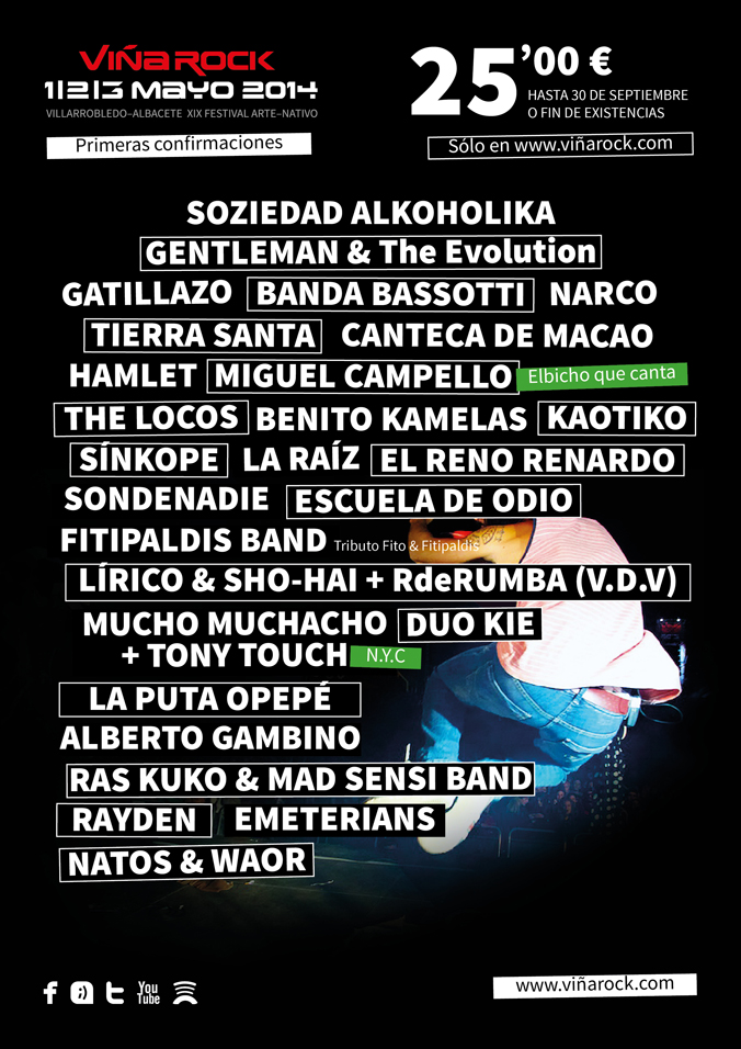 El festival mas importante de rock y música alternativa de la península comienza a desvelar el cartel que tiene previsto para su edición del año que viene. Entre las novedades que más nos interesan a nosotros, amantes de los sonidos jamaicanos tenemos a Gentleman, imprescindible cantante de reggae Alemán que acaba de sacar hace unos meses su último albúm «New Day Dawn». Además del alemán ya están confirmados varios de los más importantes artistas de nuestro país, Ras Kuko y la Mad sensi, La puta Opepé, Emeterians y Alberto Gambino. Seguiremos actualizando a cada novedad que vayamos descubriendo.