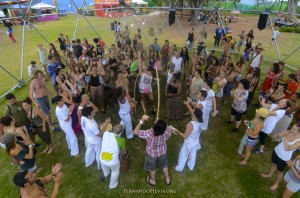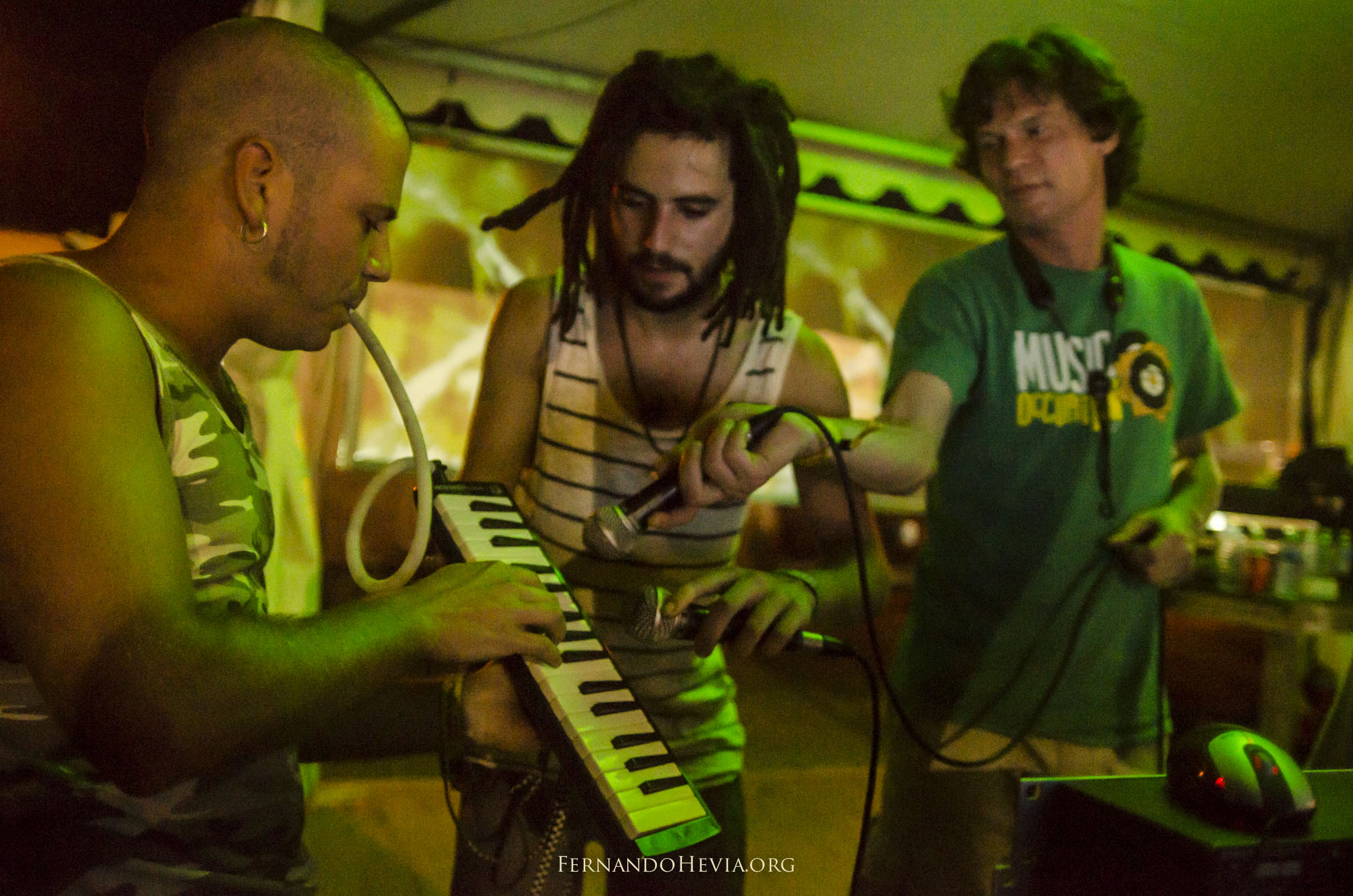 Tras dos días tan intensos, el lunes comenzamos a disfrutar seriamente, en el horario matutino, del área Vivir la Energía. Allí se podía disfrutar a diario de distintos tipos de masaje y terapias alternativas. Estratégicamente situado junto a las hamacas, cerca de una de las mayores sombras del recinto, este área programó interesantes charlas y talleres durante toda la semana, pero si lo nombramos es sobre todo porque allí descubrimos un proyecto musical chileno bien interesante. Koradub se encargaban de sonorizar las dos horas de terapias a donación y su fusión de la kora con percusiones orgánicas, melódica, voces, ecos y reverbs, envolvía todo ese área en una atmósfera única. Muy recomendable para quien busque un tiempo de meditación más allá de la madrugada en la o para quien esté cansado de tanta música de relajación a base de pajaritos y riachuelos artificiales o mantras occidentalizados. En Koradub militan entre otros Tiano Bless, ganador del Contest Latino en 2012, y Sebatierra, que nos hablaron de un proyecto hermano centrado en el roots reggae: Santobando.
