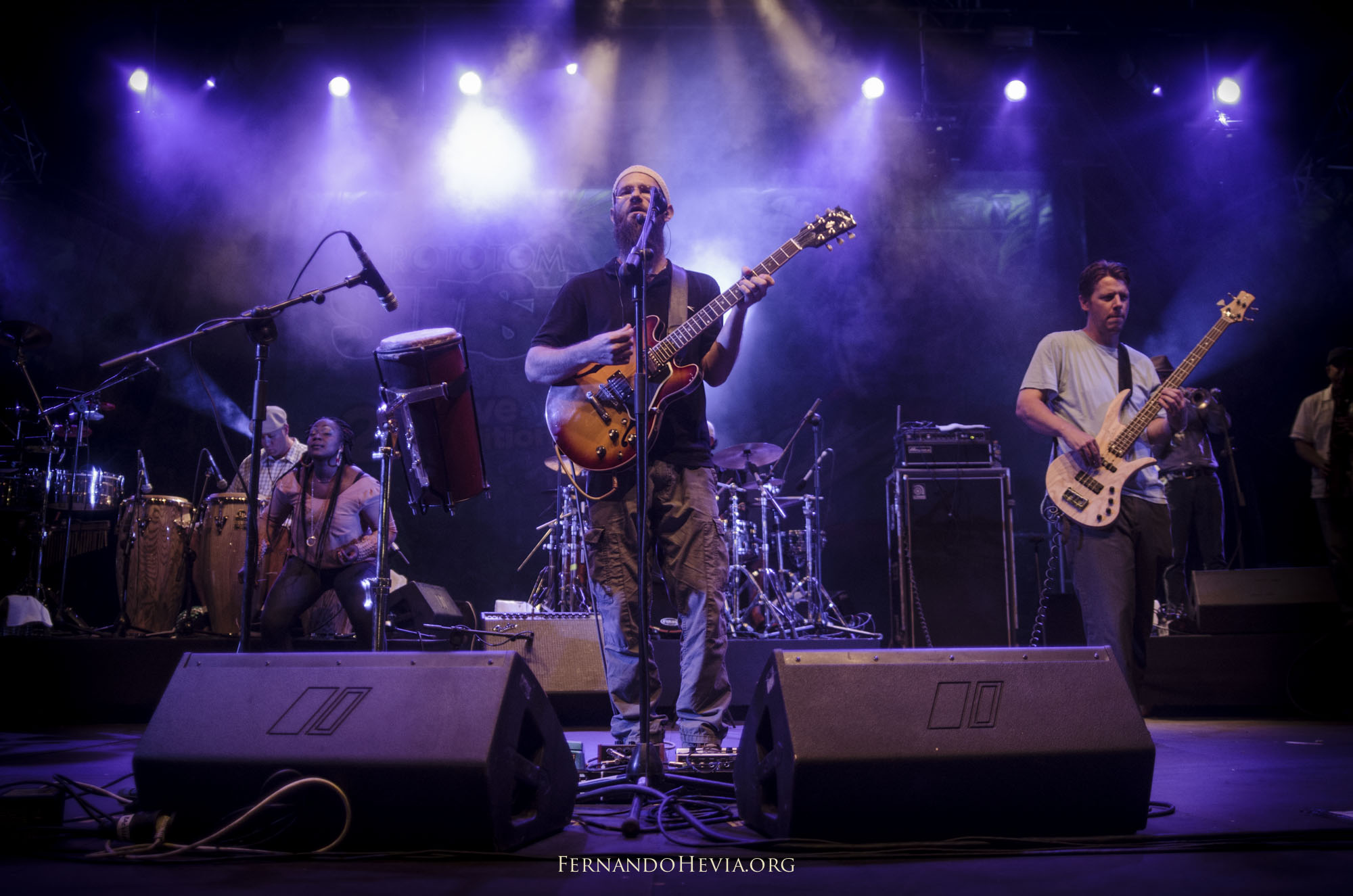 004-groundation-002 Y por fin, Groundation. No nos detendremos demasiado porque ya reseñamos extensamente su último concierto en Madrid (www.reggae.es/2013/06/05/cronica-groundation-en-madrid/), pero cómo no dedicar un párrafo a otra de las grandes actuaciones de la semana… Una vez más variaron su repertorio e hicieron sonar como nuevos todos sus temas, con un nivel de instrumentación a la altura de muy pocas bandas y fecundos solos que despertaron, uno tras otro, el aplauso generalizado. What Could Have Been abrió el recorrido y anunció la profundidad del trayecto con su tono interrogante, Daniel iluminó la noche, The Dreamer espesó el ambiente, We Free Again nos liberó y Glory to the Kings, con solos de teclado y bajo, nos elevó y devolvió a tierra en varias ocasiones. Y por si alguien echaba en falta algún que otro clásico, broche final con Freedom Taking Over.