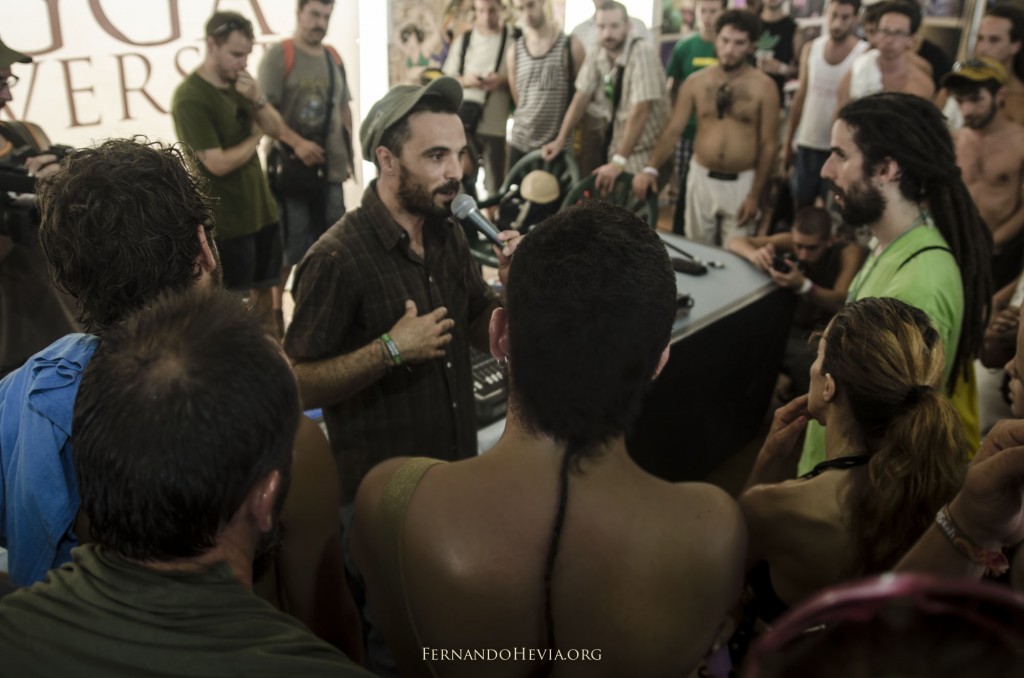 Comenzamos la primera mañana de festival compartiendo las primeras impresiones en el área de prensa. Durante toda la semana nos encontramos por allí con los y las compañeras de Sound System Fm, ACR, Soft Secrets, La de Dios, Radio Rasta y un montón de medios más. También visitamos algunos de los espacios del festival que desarrollan buena parte de la actividad en el horario sin conciertos: escuchamos la sesión de Nyabinghi Chants en House of Rastafari, nos relajamos en los alrededores de Vivir la Energía y contemplamos desde allí las acrobacias y piruetas sobre el slackline en Rototom Circus