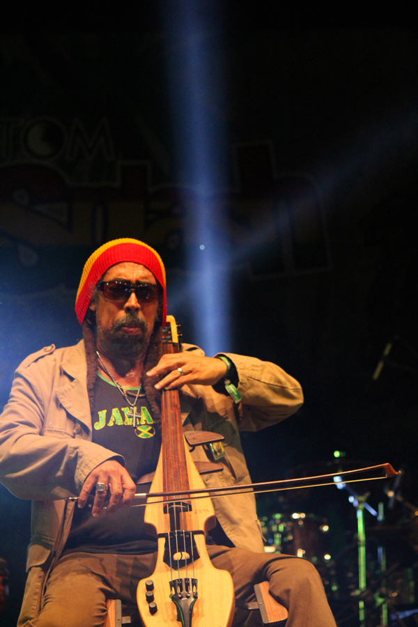 No nos detendremos en los prolegómenos. Tan sólo comentar que desde el primer momento vimos con buenos ojos la ubicación de las diversas áreas del festival. Y poco tardamos en disfrutar del primer gran acierto de la programación, toda una declaración de intenciones, creemos: los veteranos Third World inauguraron por todo lo alto el escenario principal, ofreciendo un directo sin fisuras, propio de una banda de tal veteranía, en el que brilló su ya clásico sonido reggae con influencias soul, funk, disco… Éxitos como 96 Degrees In The Shade, Now That We Found Love, Try Jah Love, Reggae Ambassador, etc. sonaron muy convincentes en un repertorio amplio y heterogéneo en el que hubo tiempo para todo. Destacó algún guitarreo que otro y en líneas generales el batería, que prendió la noche con un largo solo de djembé. No convenció tanto, al menos en principio, el pasaje de violonchelo eléctrico, que sin embargo terminó por emocionar al desembocar en Redemption Song. En definitiva Third World hicieron de auténticos embajadores del reggae y dejaron un buen sabor de boca, también a quienes gustamos de un sonido más rootikal, o incluso ganas de más… Ya se sabe, las ansias de la primera noche…