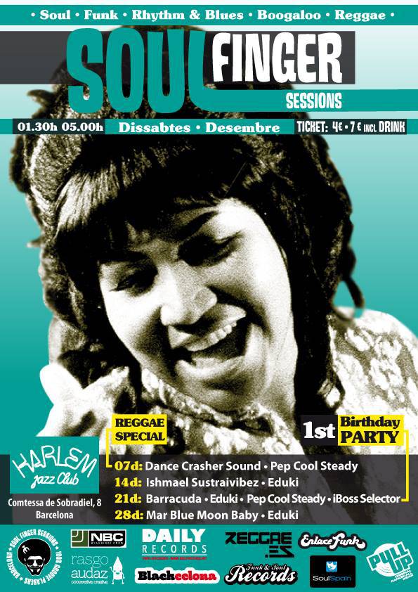 Ya está lista la programación del mes de diciembre de las Soul Finger Sessions! Soul, Funk, Reggae, Boogaloo, Ska, Ryhthm & Blues, Dancehall… la mejor música negra todos los sábados en el centro de Barcelona.