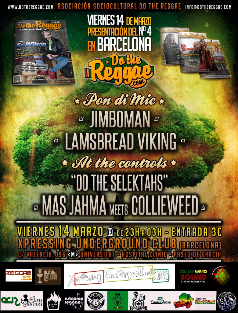 PRESENTACIÓN Nº 4 de Do The Reggae en Barcelona con Jimboman y Lamsbread, Viking al micro y «Dotheselectahs» a los controles, en esta ocasión Mas Jahma meets Collie Weed.