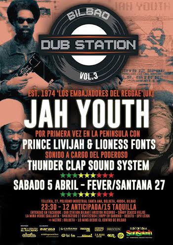 El próximo 5 de abril, los embajadores del reggae británico, Jah Youth Sound System, actuarán en la sala Santana 27 con motivo de la tercera edición de Dub Station Bilbao. Se trata de un evento que ha llegado a Bilbao tras arrasar en ciudades europeas como París, Marsella, Madrid o Barcelona, entre otras.