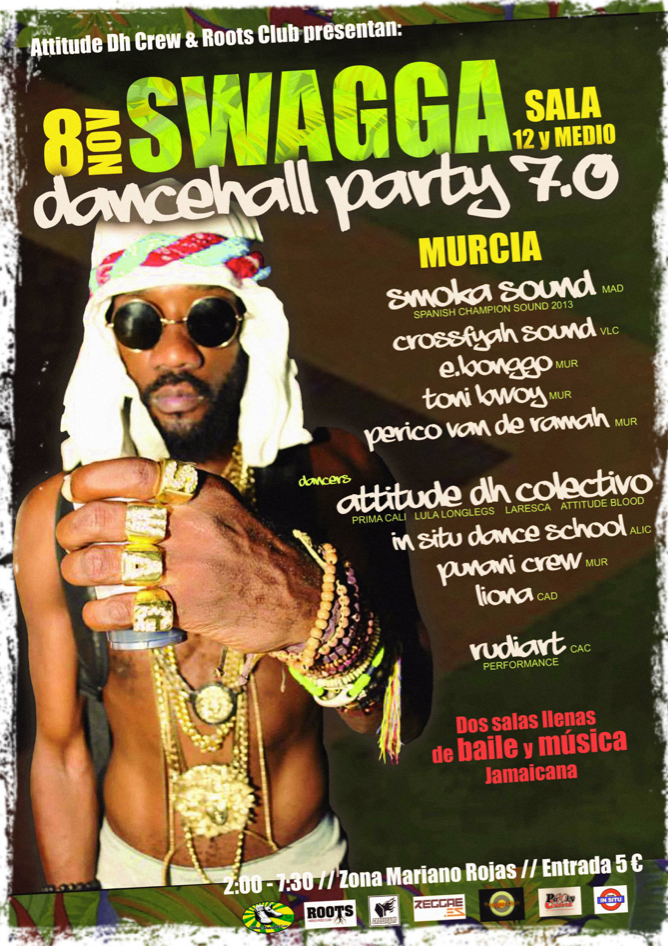 swagga7.0 imprimirAttitude Dancehall Crew presenta junto a Roots World Music Club, la Swagga Dancehall Party 7.0 en la sala 12 y medio de Murcia.