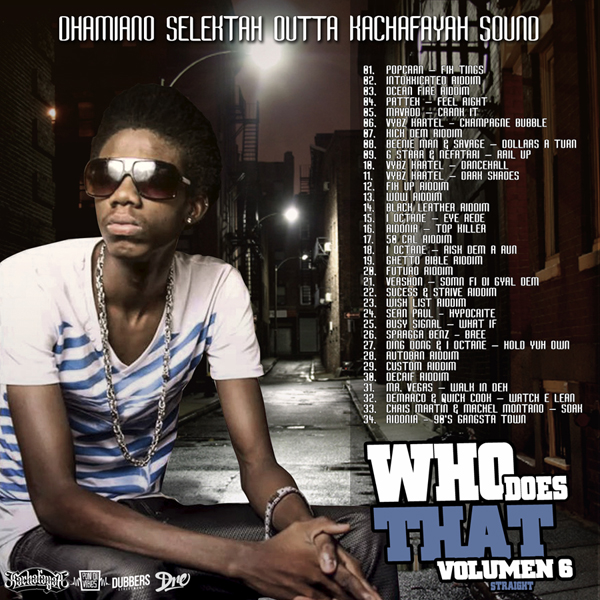 Dhamiano Selektah (Kachafayah Sound) presenta el sexto volumen de «Who Does That», 50 minutos de dancehall juggling con las ultimas novedades de Vybz Kartel, I Octane, Alkaline, Vershon… en riddims como Ghetto Bible, Intoxxicated, Custom o Autoban.