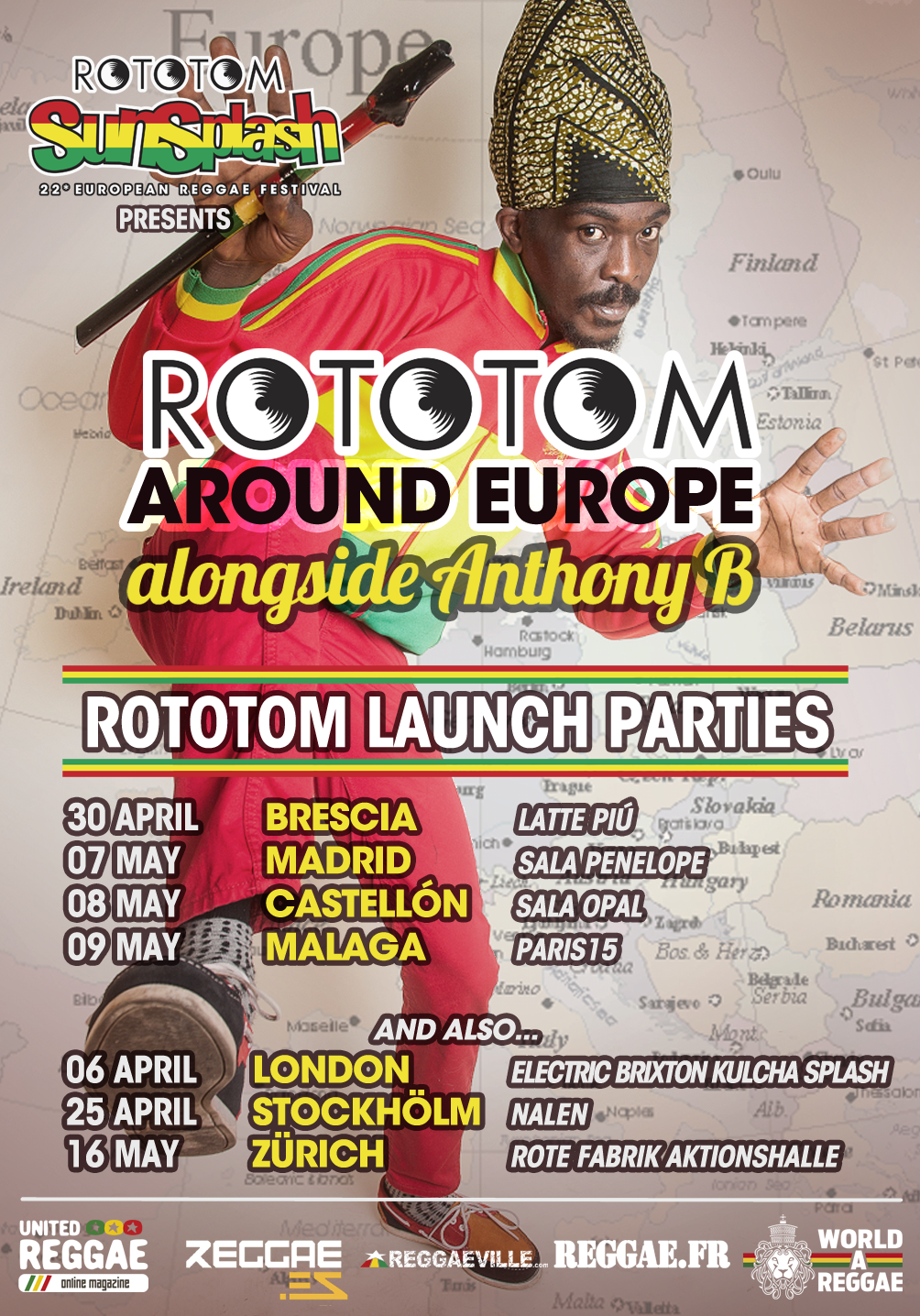 El festival reggae organizará conciertos y fiestas especiales en siete ciudades europeas entre los meses de abril y mayo respaldando la gira del veterano artista jamaicano Anthony B con eventos especiales en España, Inglaterra, Italia, Suecia y Suiza.